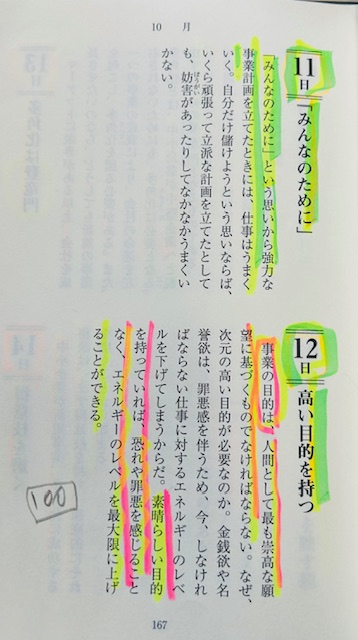 稲盛和夫一日一言 経営理念(今日の言葉) 2025.10.11 おはようございま~す 南の島は快晴で~す 本日秋季高校野球準決勝 すごく楽しみで~す さて今朝の一日一言は 11日 「みんなのために」”みんなのために”という思いから強力な事業計画を立てたときには 仕事はうまくいく。自分だけ儲けようという思いならば、いくら頑張って立派な計画を立てたとしても、妨害があったりしてなかなかうまくいかない。 12日「高い目標を持つ」事業の目的は、人間として最も崇高な願望に基づくものでなければならない。…素晴らしい目的を持っていれば、恐れや罪悪感を感じることなく、エネルギーのレベルを最大限に上げることができる。 ハイコツコツとコツコツと歩んでいきたいと思いま~す