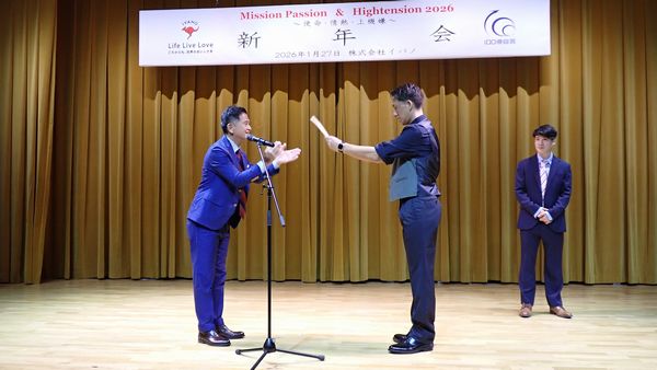 今年の新年会では、永年勤続表彰、成人祝い、そしてサプライズ表彰を実施しました。