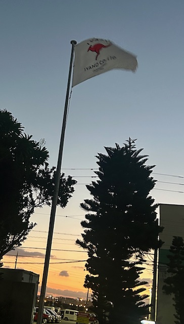 今朝の社旗は羽ばたいています